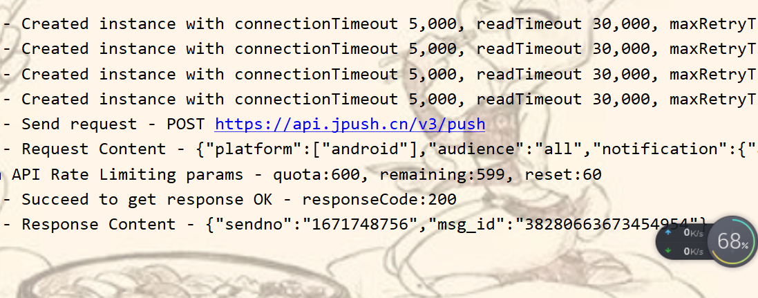 package com.yt.xxx.app.util; import cn.jiguang.common.resp.APIConnectionException; import cn.jiguang.common.resp.APIRequestException; import cn.jpush.api.JPushClient; import cn.jpush.api.push.PushResult; import cn.jpush.api.push.model.Message; import cn.jpush.api.push.model.Options; import cn.jpush.api.push.model.Platform; import cn.jpush.api.push.model.PushPayload; import cn.jpush.api.push.model.audience.Audience; import cn.jpush.api.push.model.notification.AndroidNotification; import cn.jpush.api.push.model.notification.IosNotification; import cn.jpush.api.push.model.notification.Notification; import lombok.extern.slf4j.Slf4j; import java.util.Map; /** * @ClassName JPushUtil * @Description: * @Author gzm * @Date 2020/6/12 10:14 **/ @Slf4j public class JPushUtil { /** 设置好账号的app_key和masterSecret是必须的 用自己创建以用后的APP_KEY和MASTER_SECRET 替换即可,后期可写到yml配置文件中*/ private static String APP_KEY = "e538********b5231"; private static String MASTER_SECRET = "3d34******75409"; // 极光推送>>Android //Map<String, String> parm是我自己传过来的参数,可以自定义参数 public static void jpushAndroid(Map<String, String> parm) { // 创建JPushClient(极光推送的实例) JPushClient jpushClient = new JPushClient(MASTER_SECRET, APP_KEY); // 推送的关键,构造一个payload PushPayload payload = PushPayload.newBuilder() // 指定android平台的用户 .setPlatform(Platform.android()) // 你项目中的所有用户 .setAudience(Audience.all()) // .setAudience(Audience.alias(parm.get("alias"))) // 设置别名发送,单发,点对点方式 //.setAudience(Audience.tag("tag1")) // 设置按标签发送,相当于群发 // .setAudience(Audience.registrationId(parm.get("id"))) // registrationId指定用户 // 发送内容 .setNotification(Notification.android(parm.get("msg"), parm.get("title"), parm)) // apnProduction指定开发环境 true为生产模式 false 为测试模式 (android不区分模式,ios区分模式) 不用设置也没关系 // TimeToLive 两个小时的缓存时间 .setOptions(Options.newBuilder().setApnsProduction(true).setTimeToLive(7200).build()) // 自定义信息 .setMessage(Message.content(parm.get("msg"))) .build(); try { PushResult pu = jpushClient.sendPush(payload); System.out.println(pu.toString()); } catch (APIConnectionException e) { e.printStackTrace(); } catch (APIRequestException e) { e.printStackTrace(); } } // 极光推送>>ios // Map<String, String> parm是我自己传过来的参数,可以自定义参数 public static void jpushIOS(Map<String, String> parm) { // 创建JPushClient JPushClient jpushClient = new JPushClient(MASTER_SECRET, APP_KEY); PushPayload payload = PushPayload.newBuilder() // ios平台的用户 .setPlatform(Platform.ios()) // 所有用户 .setAudience(Audience.all()) // registrationId指定用户 //.setAudience(Audience.registrationId(parm.get("id"))) .setNotification(Notification.newBuilder() .addPlatformNotification(IosNotification.newBuilder() .setAlert(parm.get("msg")) .setBadge(+1) // 这里是设置提示音 .setSound("happy") .addExtras(parm) .build()) .build()) .setOptions(Options.newBuilder().setApnsProduction(false).build()) // 自定义信息 .setMessage(Message.newBuilder().setMsgContent(parm.get("msg")).addExtras(parm).build()) .build(); try { PushResult pu = jpushClient.sendPush(payload); log.info(String.valueOf(pu)); } catch (APIConnectionException e) { e.printStackTrace(); } catch (APIRequestException e) { e.printStackTrace(); } } // 极光推送>>All所有平台 public static void jpushAll(Map<String, String> param) { // 创建JPushClient JPushClient jpushClient = new JPushClient(MASTER_SECRET, APP_KEY); // 创建option PushPayload payload = PushPayload.newBuilder() // 所有平台的用户 .setPlatform(Platform.all()) // registrationId指定用户 .setAudience(Audience.registrationId(param.get("id"))) .setNotification(Notification.newBuilder() // 发送ios .addPlatformNotification(IosNotification.newBuilder() // 消息体 .setAlert(param.get("msg")) .setBadge(+1) // ios提示音 .setSound("happy") // 附加参数 .addExtras(param) .build()) // 发送android .addPlatformNotification(AndroidNotification.newBuilder() // 附加参数 .addExtras(param) // 消息体 .setAlert(param.get("msg")) .build()) .build()) // 指定开发环境 true为生产模式 false 为测试模式 (android不区分模式,ios区分模式) .setOptions(Options.newBuilder().setApnsProduction(true).build()) // 自定义信息 .setMessage(Message.newBuilder().setMsgContent(param.get("msg")).addExtras(param).build()) .build(); try { PushResult pu = jpushClient.sendPush(payload); log.info(String.valueOf(pu)); } catch (APIConnectionException e) { e.printStackTrace(); } catch (APIRequestException e) { e.printStackTrace(); } } }