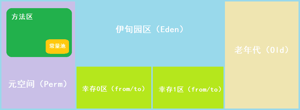 堆真正意义上为:伊旬园区+幸存0,1区(to,from)+老年代