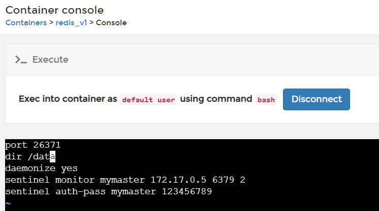 sentinel monitor mymaster 172.17.0.5 6379 2 #主服务器IP 和端口 2指从服务器认为主节点失效的个数 一般 从服务器个数/2 +1
