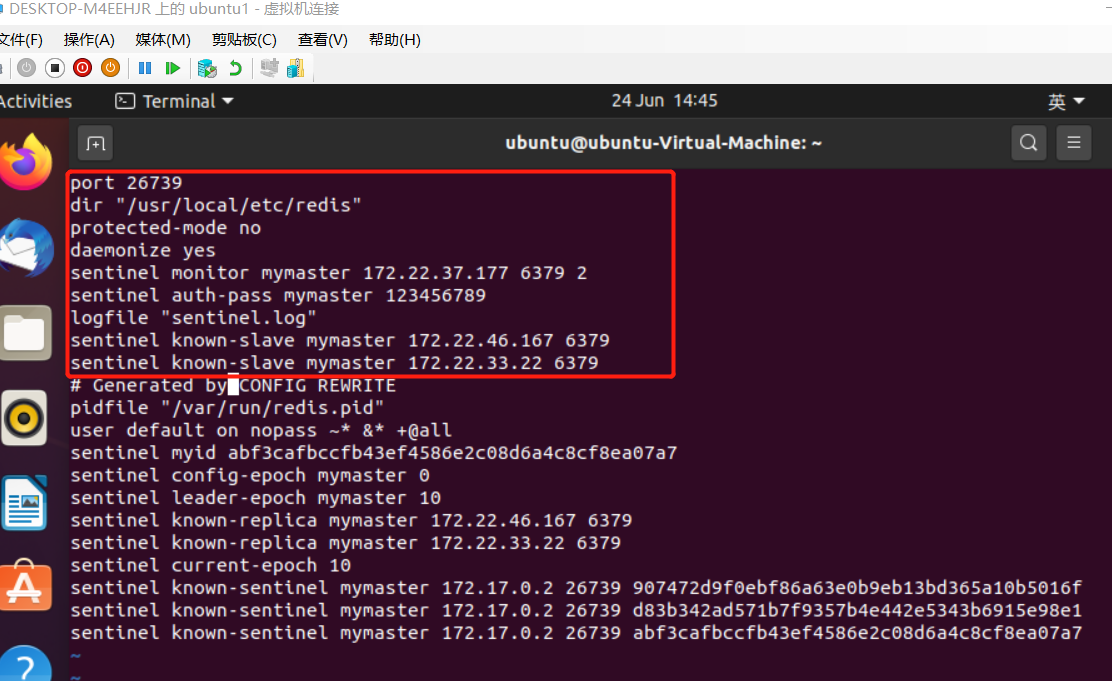 标红色的是sentinel.conf的配置 其余的貌似自动生成的