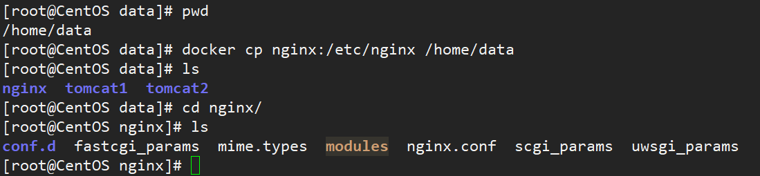 docker cp nginx:/etc/nginx /home/data