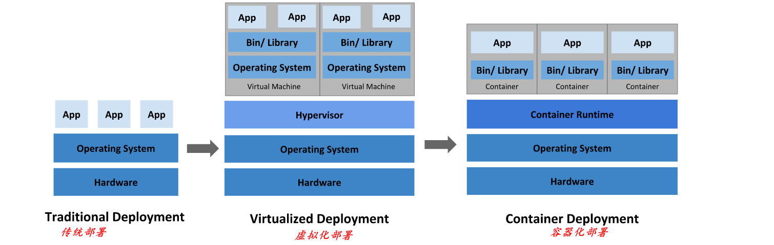 作为解决方案,引入了虚拟化。虚拟化技术允许你在单个物理服务器的 CPU 上运行多个虚拟机(VM)。 虚拟化允许应用程序在 VM 之间隔离,并提供一定程度的安全,因为一个应用程序的信息 不能被另一应用程序随意访问。