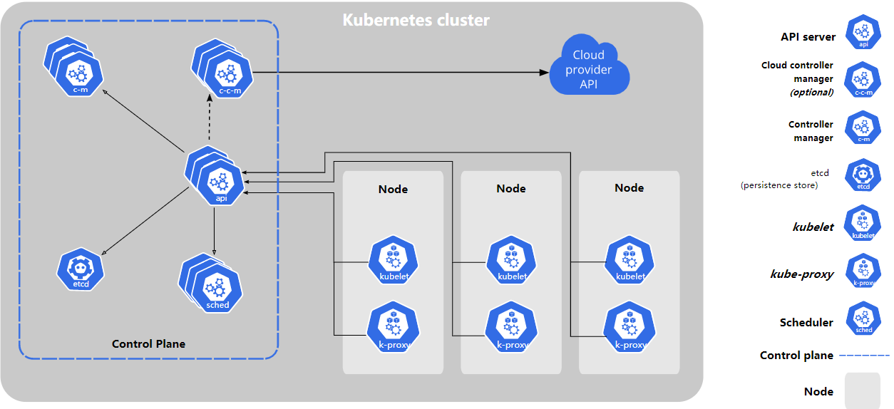 - 主节点上负责提供 Kubernetes API 服务的组件,它是 Kubernetes 控制面的前端,kube-apiserver是Kubernetes最重要的核心组件之一。