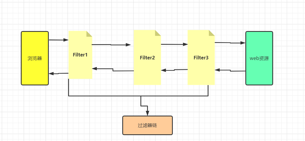 - 过滤器相当于浏览器与Web资源之间的一道过滤网,在访问资源之前通过一系列的过滤器对请求