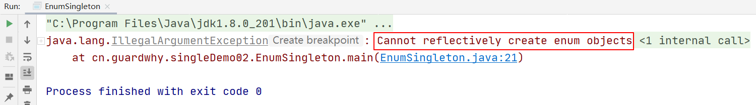EnumSingleton singleton2 = declaredConstructor.newInstance();