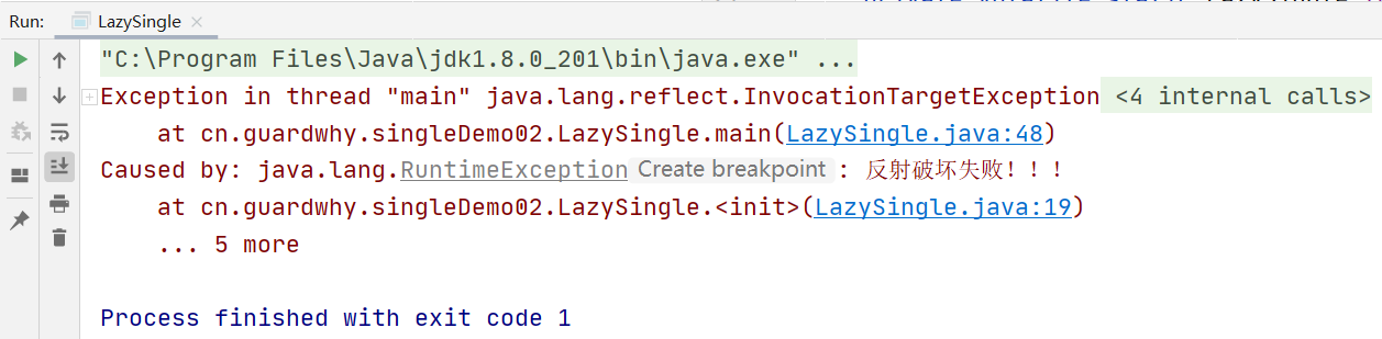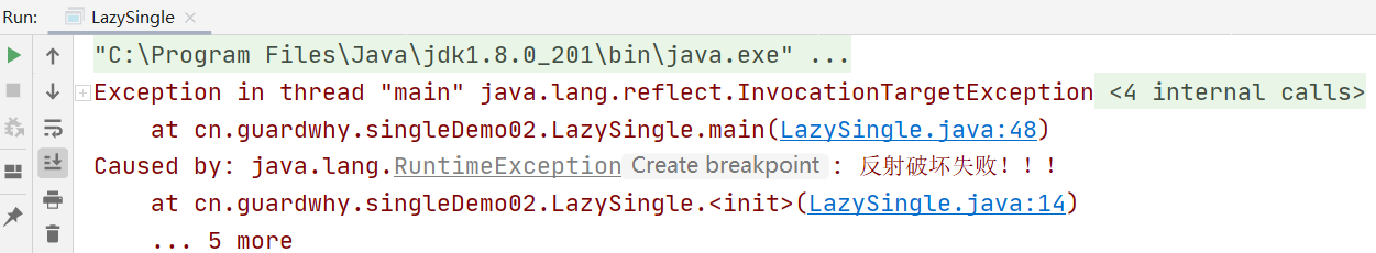 Constructor<LazySingle> declaredConstructor = LazySingle.class.getDeclaredConstructor(null);