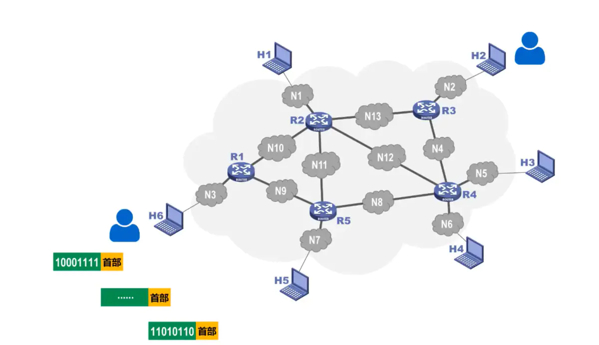 - 可以随时发送分组,而不需要事先建立连接。构成原始报文的一个个分组,依次在各结点交换机上存储转发。