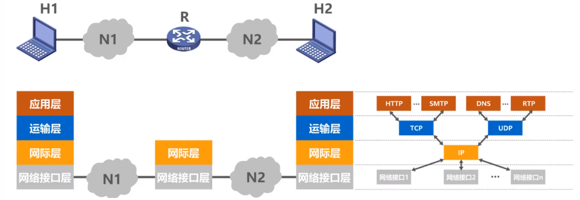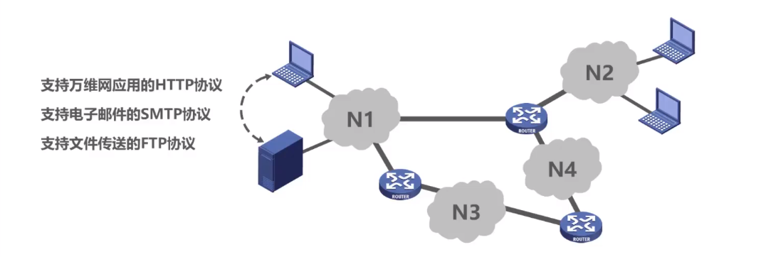 一方面负责互连不同的网络接口,另一方面,为各种网络应用提供服务。