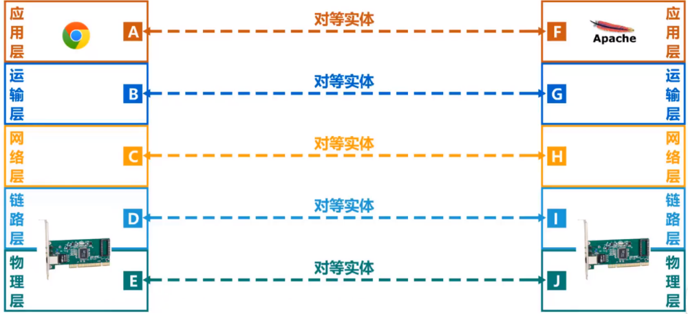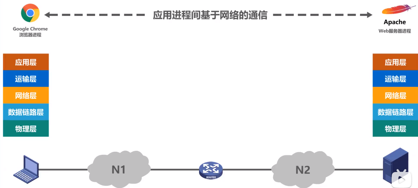 注意: 主机和Web服务器之间基于网络的通信,实际上是主机中的浏览器应用进程与Web服务器中的Web服务器中的Web服务器应用进程之间基于网络的通信。