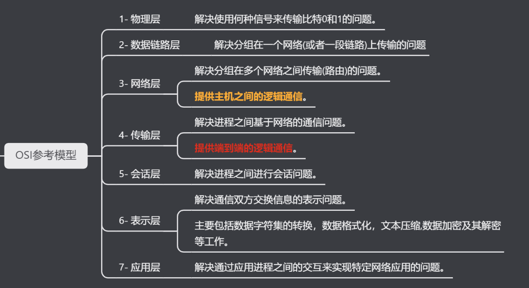 - TCP/IP体系结构的应用层包含了大量的应用层协议,IP协议可以将不同的网络接口进行互联。并且向其上的 TCP协议和UDP协议提供网络互连服务。