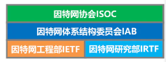 - 因特网工程部IETF,负责研究中短期工程问题,主要针对协议的开发和标准化。