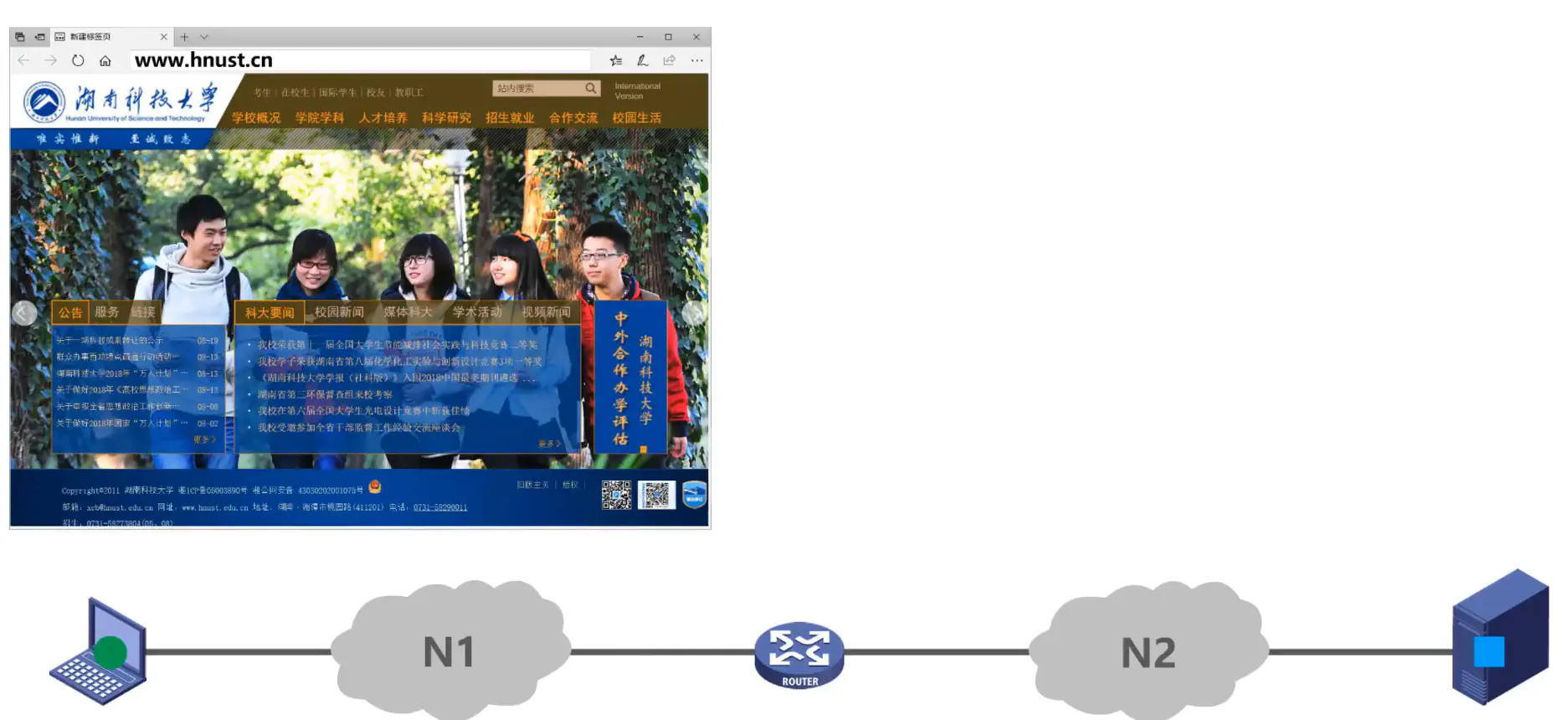 主机属性网络N1,web服务器属于网络N2,N1和N2通过路由器互连。使用主机中的浏览器访问web服务器,主机会向Web服务器发送请求。