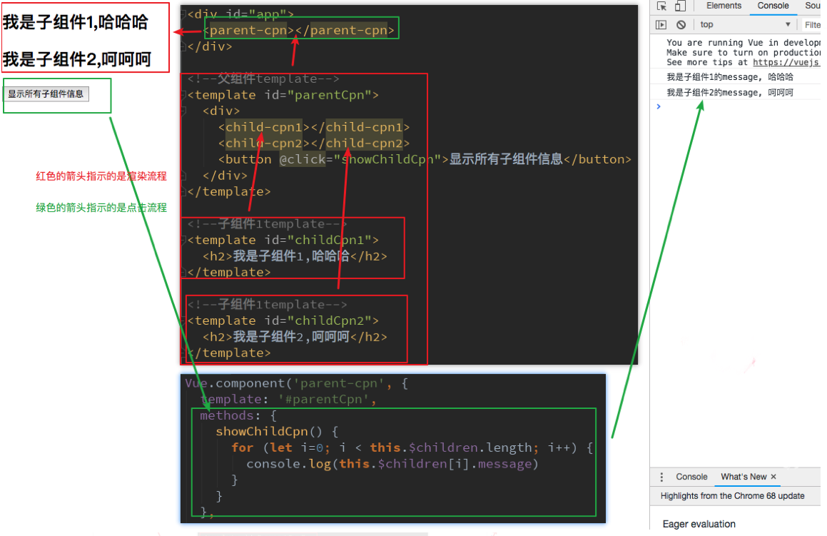 - this.$children是一个数组类型,它包含所有子组件对象。