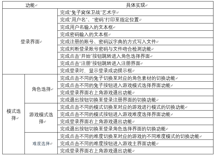 人物选择功能,模式选择功能 困难选择功能都已经完成,游戏大框已经完成,这些功能优先级都是高