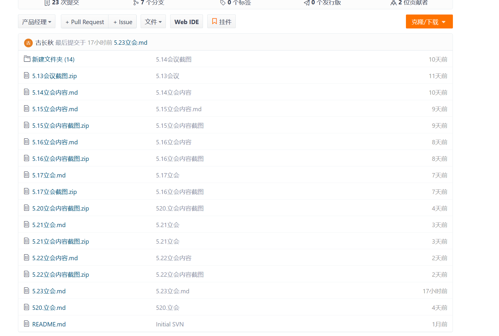 里边包含了 5.13~5.24周末除外的所有立会文档以及截图