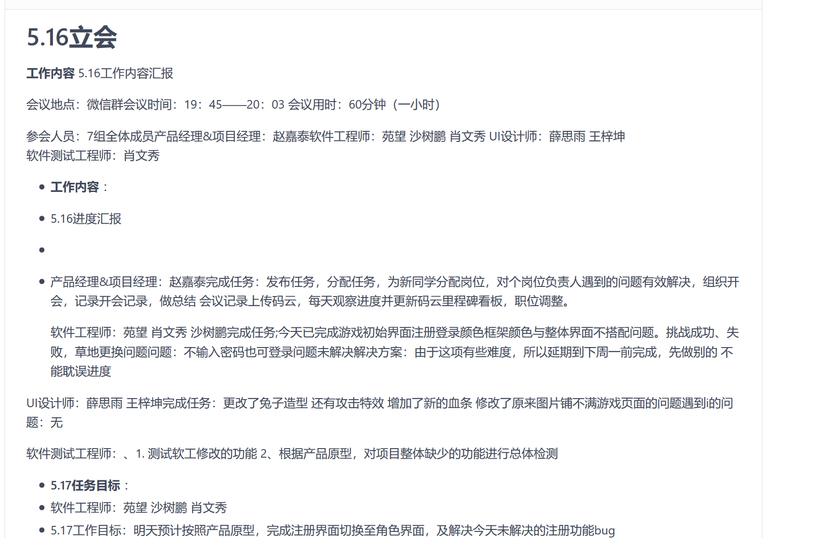 每日立会 测试记录 代码上传 几乎每天都有上传 详细的任务 和完成情况 每日立会描述的比较清晰