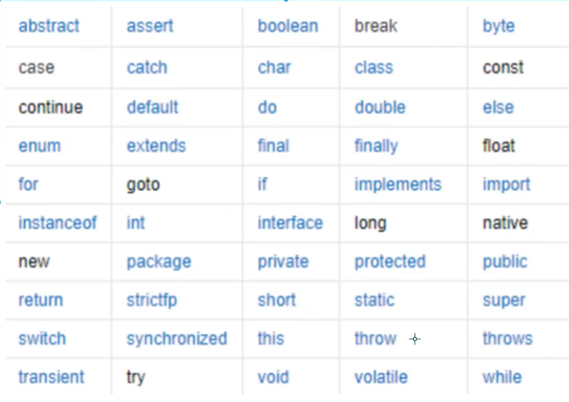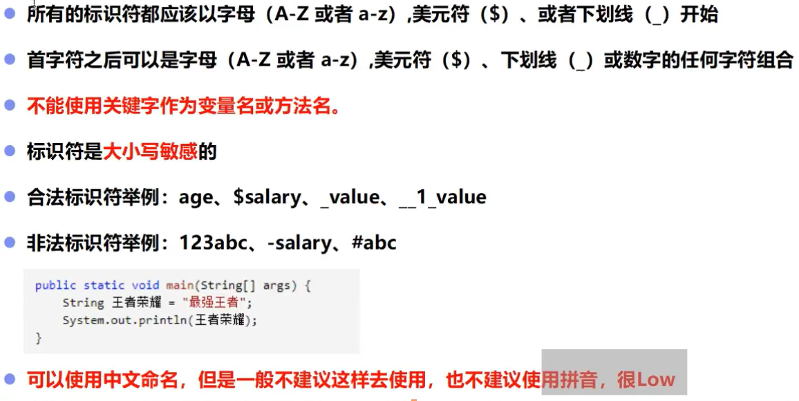 java所有的组成部分都需要名字,类名、变量名、方法名都被称为标识符。