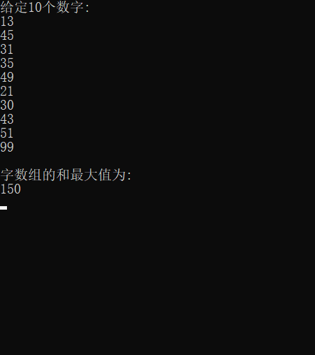printf("字数组的和最大值为:\n");