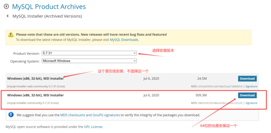 Mysql官网下载地址https://downloads.mysql.com/archives/installer/