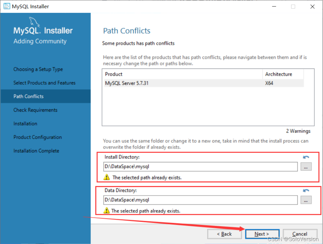 7. 确认一下安装路径和数据存放路径对不对,没有问题的话就直接点击Next