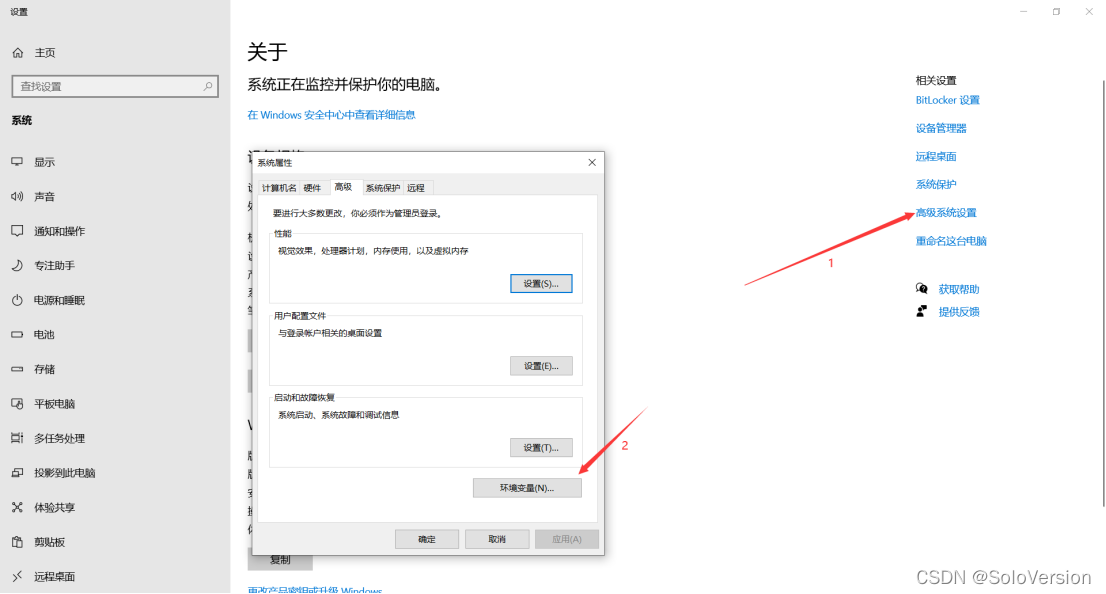 3. 先点击“高级系统设置”,再点击“环境变量”