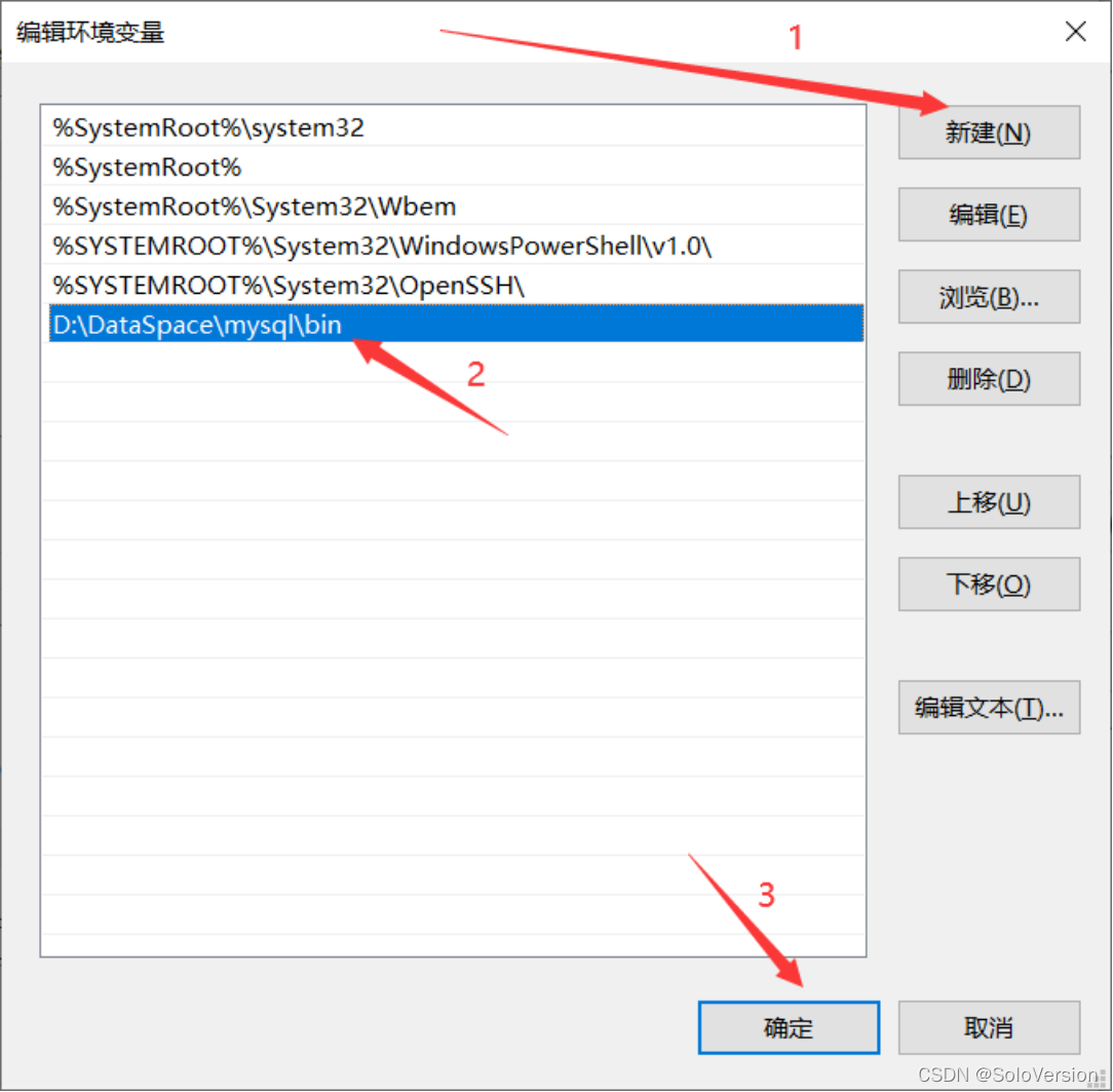 5. 点击“新建”,将MySQL的安装路径添加上去,之后点击“确定”