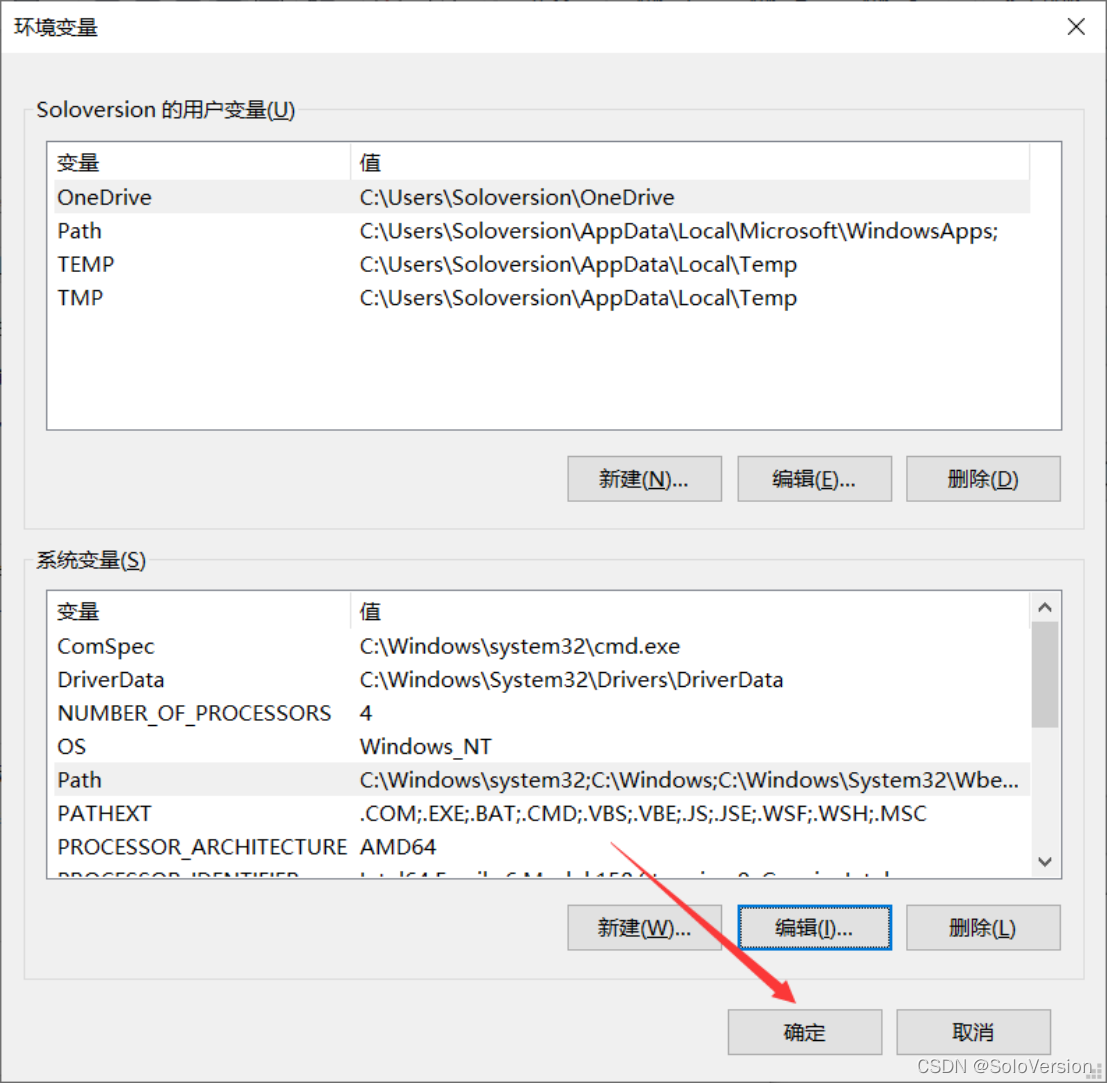 4. 在“系统变量”中选择“Path”,点击“编辑”