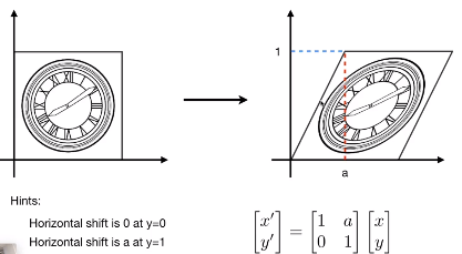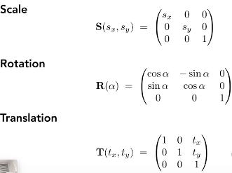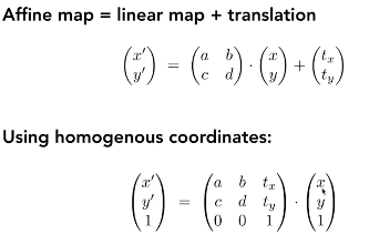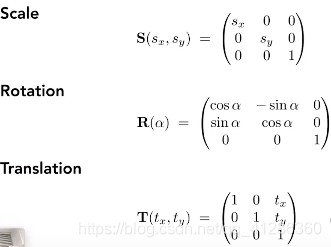 用齐次坐标表示一个仿射变换的时候,最后一行永远是(0,0,1).平移的量在第三列。