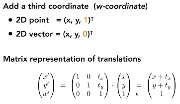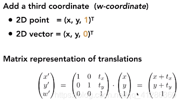 通过增加一个数,让平移变换也写成一个矩阵乘以一个向量的形式。