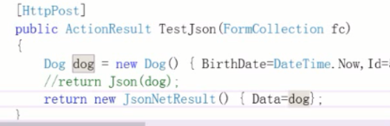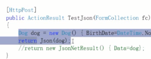 使用Json.Net代替最简单的方法就是使用下面的JsonNetResult 来作为 ActionResult 返回。