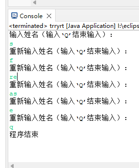 System.out.println("重新输入姓名(输入‘Q’结束输入):");