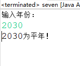 package zuoye; import java.util.Scanner; public class seven { public static void main(String[] args) { Scanner input =new Scanner(System.in); System.out.println("输入年份:"); year(input.nextInt()); } public static void year(int year) { if(year%4==0&&year!=100||year%400==0) { System.out.println(year+"为闰年!"); } else { System.out.println(year+"为平年!"); } }}