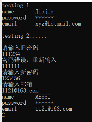 User user1("Jiajia", "123456", "xyz@hotmail.com");
