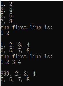 #include<iostream> #include"matrix.hpp" int main() { using namespace std; double x[] = { 1,2,3,4,5,6,7,8 }; Matrix m1(4, 2); m1.set(x); m1.print(); cout << "the first line is: \n"; cout << m1.at(0, 0) << " " << m1.at(0, 1) << endl; cout << endl; Matrix m2(2, 4); m2.set(x); m2.print(); cout << "the first line is: \n"; cout << m2.at(0, 0) << " " << m2.at(0, 1) << " " << m2.at(0, 2) << " " << m2.at(0,3) << endl; cout << endl; Matrix m3(m2); m3.set(0, 0, 999); m3.print(); }