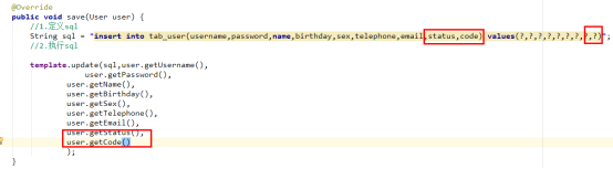user = template.queryForObject(sql,new BeanPropertyRowMapper<User>(User.class),code);