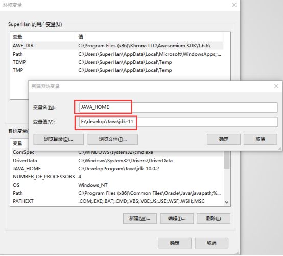变量值为JDK的安装路径,到bin目录的上一层即可。比如E:\develop\Java\jdk-11