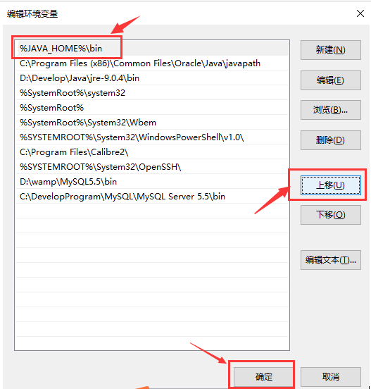 在弹出的“编辑系统变量”框中,点击“新建”,输入%JAVA_HOME%\bin。