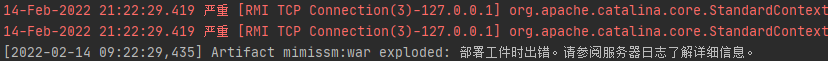 [2022-02-14 09:22:29,435] Artifact mimissm:war exploded: 部署工件时出错。请参阅服务器日志了解详细信息。
