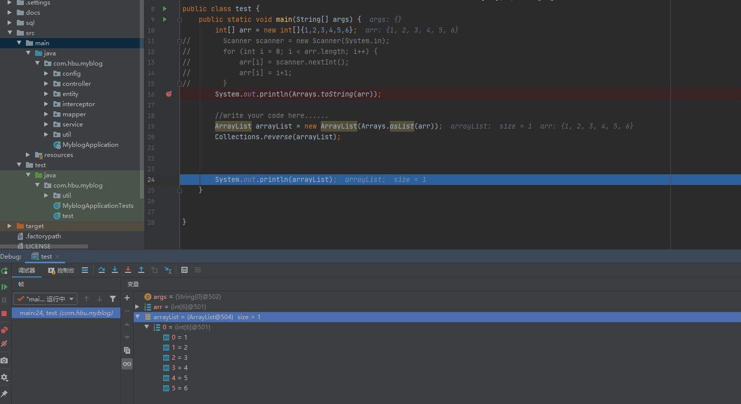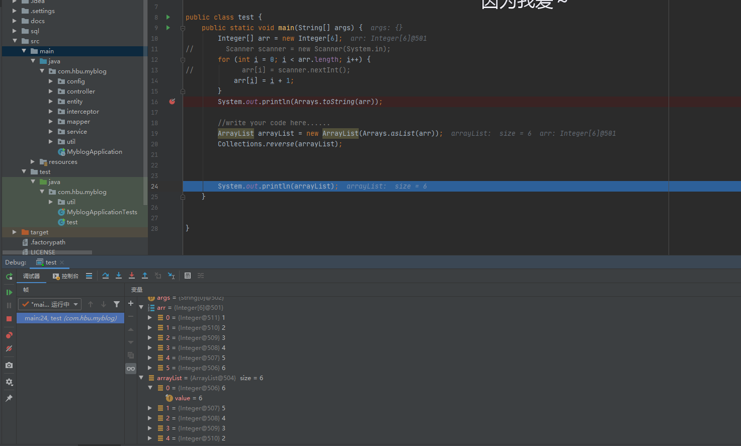 附两张图作比较,存储的基本类型时,不能如愿打印数组,打印的是哈希码。存储是包装类型、对象,就可以如愿的打印数组了。