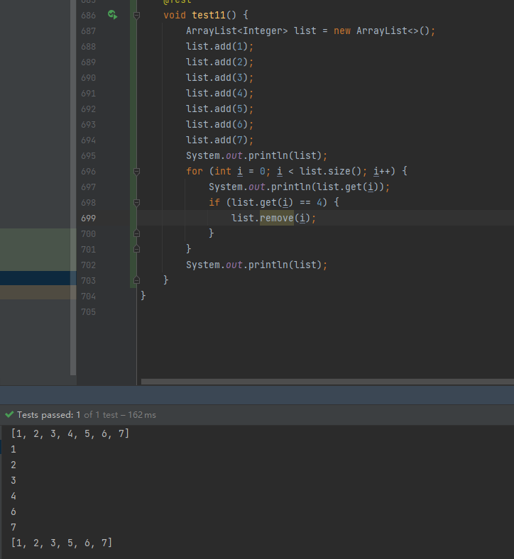 这样遍历筛选,会遍历不到5这个元素。调用remove方法数组的 下标就会往前移动,i 再加 就会跳过5这个元素了。