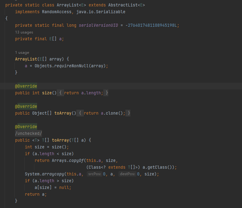 综上所论,如果在将String[]转化为List< String >的时候,是不能对转化出来的结果进行add,remove操作的,因为他们并不是我们熟悉的ArrayList,而是Arrays里面的内部类ArrayList。