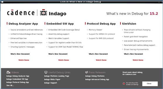 indago工具,是cadence工具,推出的一系列debug工具。在启动simvision工具时,就会弹出一个窗口,里面就提到了indago工具。