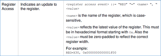 如果是指令的执行结果,REG表示寄存器,后续跟寄存器的值。这里的寄存器,要和cpu架构描述文件中的寄存器描述的名字要一致。
