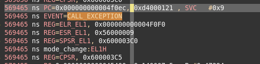 在569465ns,出现过CALL_EXCEPTION这个event。和tarmac文件中一致。