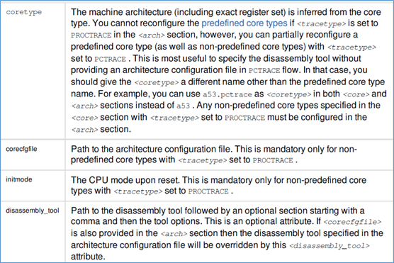 archs段,描述cpu的架构信息。corecfgfile,指定cpu架构描述文件,initmode指定cpu在初始时刻,的cpu模式。archs段中,可以描述多个cpu的架构信息。