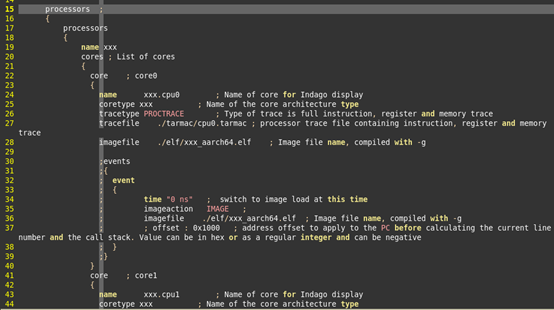 在提供了cpu架构描述文件,cpu执行指令流log(以下简称tarmac文件)后,还需要配置文件。