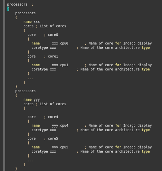 对于嵌套的每一个processors,name表示该processors的名字,cores,表示该processors中包含的core。