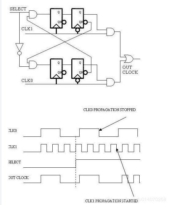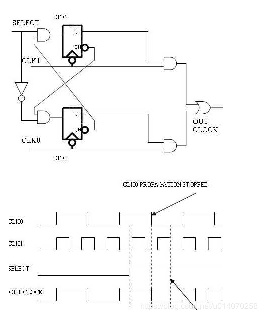 在设计多时钟系统中,需要切换时钟源,这两个时钟可能是没有关联的(相位、频率),或者他们为倍数关系。这两种情况都有可能在开关时产生毛刺(glitch),而系统上的毛刺对系统来说是危险的,他可能能够被一些寄存器捕获为触发边沿,而其他寄存器忽略此毛刺。