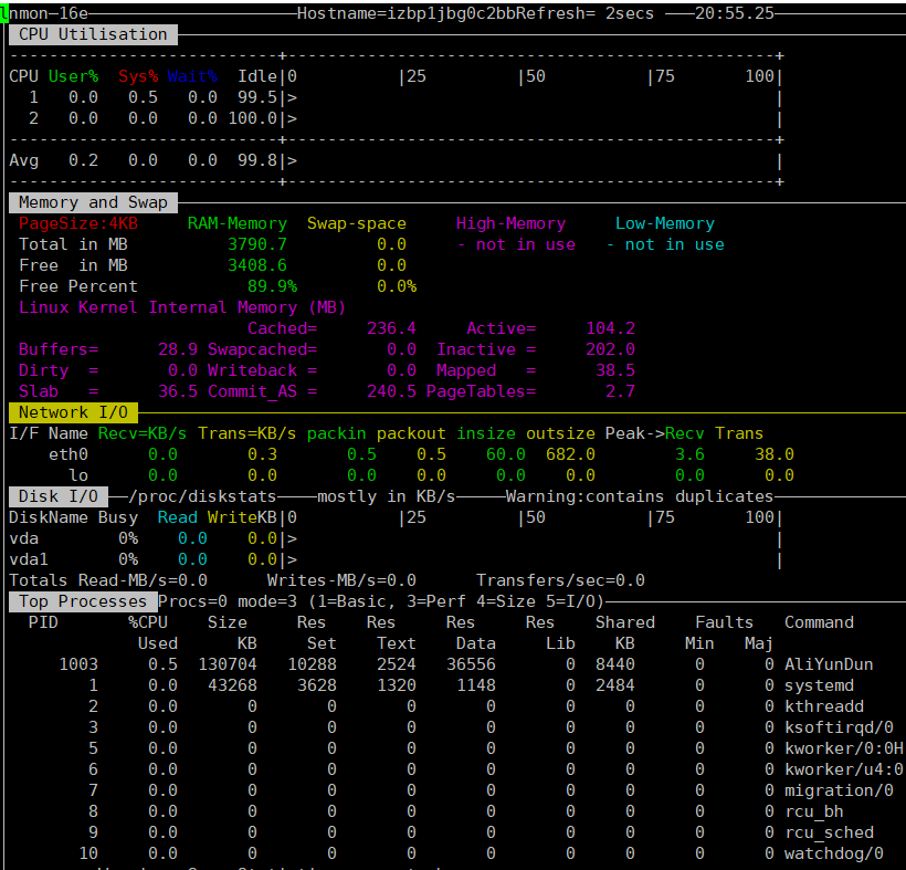 通过nmon进行监控服务器资源情况