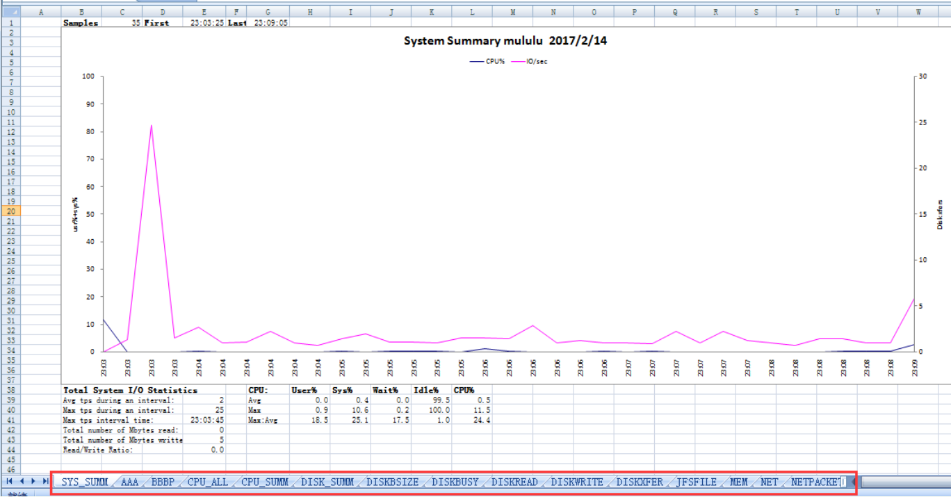 nmon监控捕获的信息,一般用nmon_analyser来进行分析。nmon_analyser 由IBM提供, 使用excel的宏命令分析加载生成excel图表,展示资源占用的各项信息。